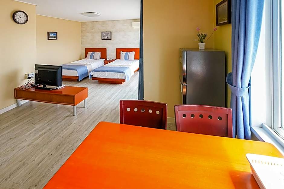 The family room's kitchen, which features a refrigerator and kitchenware, is available for cooking and storing food. The spacious family room provides air conditioning, a private entrance, a terrace with sea views as well as a private bathroom featuring a shower. The unit offers 4 beds.